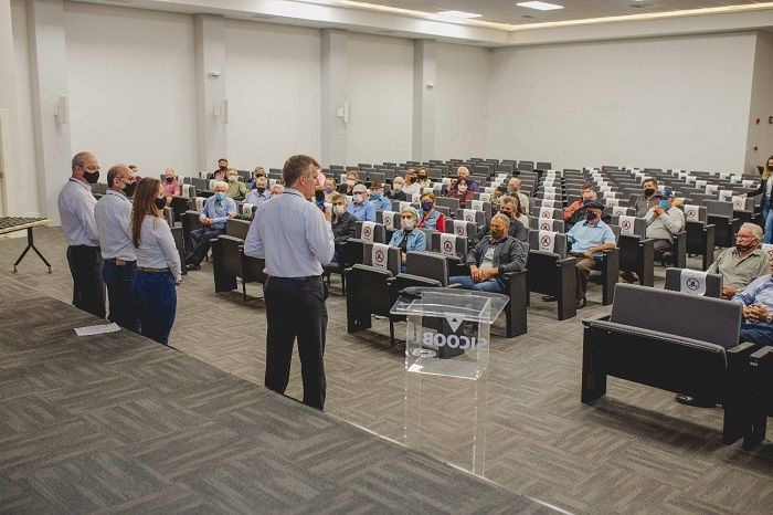 O Sicoob Credivale realizou no auditório de sua sede administrativa um evento para o resgate parcial de cota capital de associado. Conduzido pelo presidente Ivonir Buss (foto abaixo com microfone), o diretor administrativo Clóvis Freitas, a diretora operacional Taise Prestes da Silva e o diretor de negócios Antônio Arcaro, o evento recebeu 54 associados no dia 14 do mês passado.