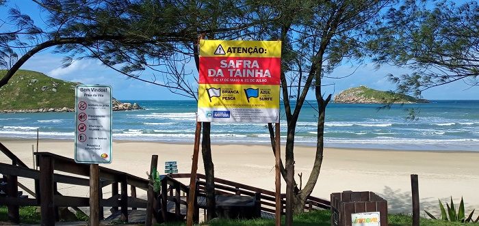 A prefeitura de Imbituba, através da Secretaria Municipal de Desenvolvimento Agrícola e Pesca (Sedap), instalou as placas que indicam, durante a temporada da tainha, quando será possível praticar a pesca e quando será permitida a prática do surfe.