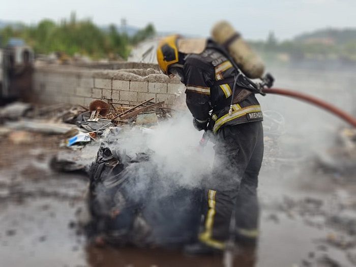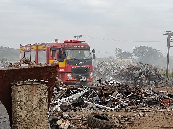 Trata-se de um incêndio em sucatas de um ferro-velho. Segundo relato do proprietário, houve uma explosão enquanto prensava sucatas.