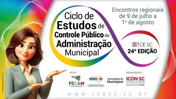 O Tribunal de Contas do Estado de Santa Catarina (TCE/SC), em parceria com a Federação Catarinense de Municípios (FECAM) e a Associação de Municípios da Região de Laguna (AMUREL), organizará a 24ª edição do Ciclo de Estudos de Controle Público da Administração Municipal. O evento acontecerá no período da manhã no Teatro do parque Diamante + Energia, e durante a tarde no Centro Universitário UNIVINTE - FUCAP, ambos em Capivari de Baixo.