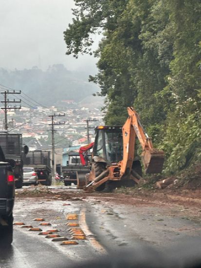 Equipes compostas por homens e máquinas estão atuando no trecho da SC 108 que vai do redutor de velocidade, próximo ao trevo, até as imediações da empresa Strawplast, apenas como referência. De acordo com motoristas que passaram pela região na manhã de hoje, o fluxo de veículos foi temporariamente interrompido nos dois sentidos da rodovia.