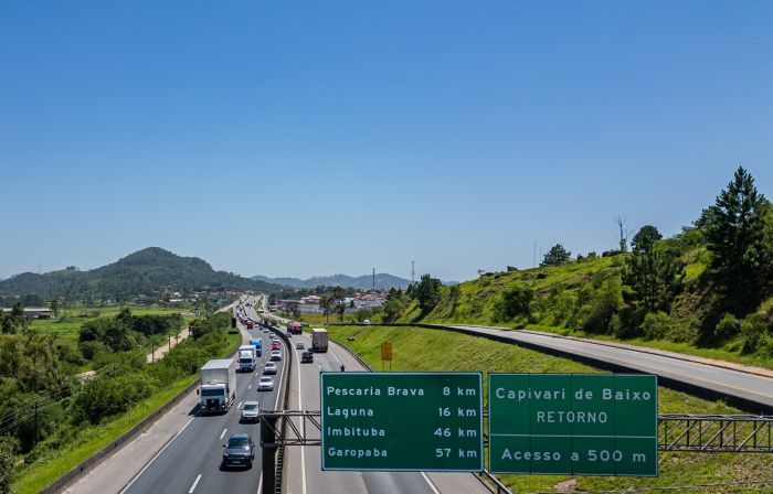 Entre Paulo Lopes e Passo de Torres: manutenção na iluminação e sinalização horizontal/vertical entre os kms 245 e 465 – ambos os sentidos;