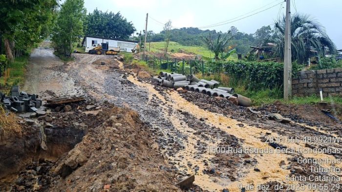 A secretaria registrou, ainda, um escorregamento de terra e pedras na Rua Manoel Estevão Fernandes. Até o meio da tarde desta terça-feira (9), o volume registrado de chuva em Tubarão foi de 55 mm, sendo 30 mm em menos de uma hora de precipitação, entre 8 e 9 horas, o que trouxe, também, problemas de alagamentos em diversas vias do município.
