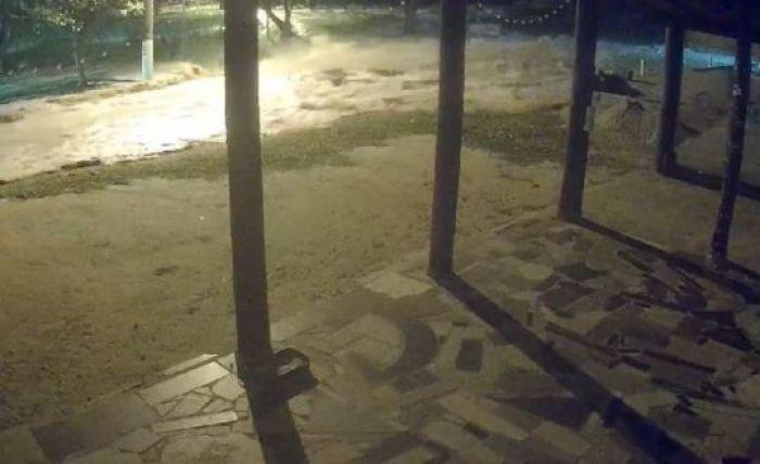 Um evento meteorológico assustou os moradores do Balneário Esplanada, em Jaguaruna, na noite deste domingo (1º) e madrugada de segunda-feira (2). Ondas gigantes derrubaram muros, danificaram portões e invadiram ruas, causando prejuízos à população.