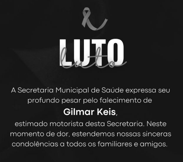 "A Secretaria Municipal de Saúde expressa seu profundo pesar pelo falecimento de Gilmar Keis, estimado motorista desta secretaria. Neste momento de dor, estendemos nossas sinceras condolências a todos os familiares e amigos", lamenta a nota.