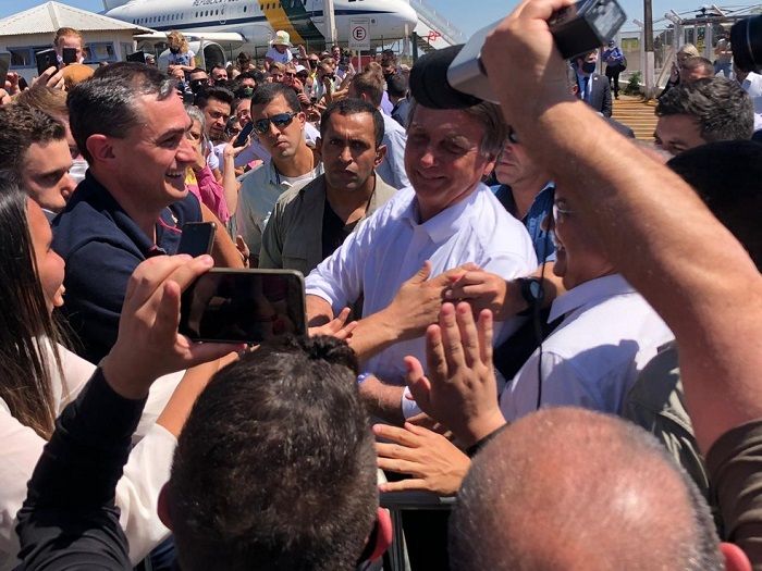 O ministro da Infraestrutura, Tarcísio de Freitas, e o da Justiça, André Mendonça, integram a comitiva. A governadora interina do Estado, Daniela Reinehr (sem partido), recepcionou o grupo logo que eles chegaram. Todos estavam sem máscara de proteção contra a Covid-19 -- o uso do item é obrigatório na cidade.