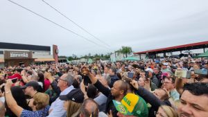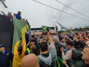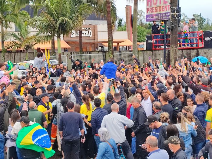 Bolsonaro segue com a agenda para Criciúma, onde Guidi, o candidato do PL, está encontrando dificuldades na eleição para prefeito. Entre gritos de "Mito" ele foi ovacionado pela multidão que se esmagava para chegar o mais perto possível dele. Uma grande escolta e apoio da polícia foi necessário para que ele conseguisse deixar o local após andar por alguns metros sentado em cima do carro para bater fotos e atender a população.