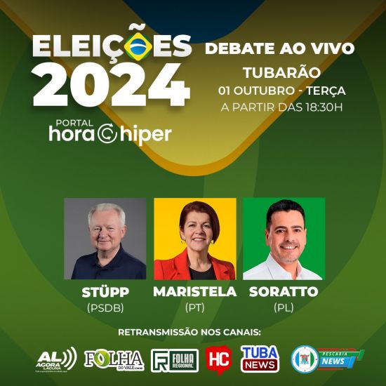 O debate será transmitido ao vivo pelas rádios Hiperativa 96.7 FM e Hiper 93.9 FM, além do canal no YouTube do programa Hora Hiper.