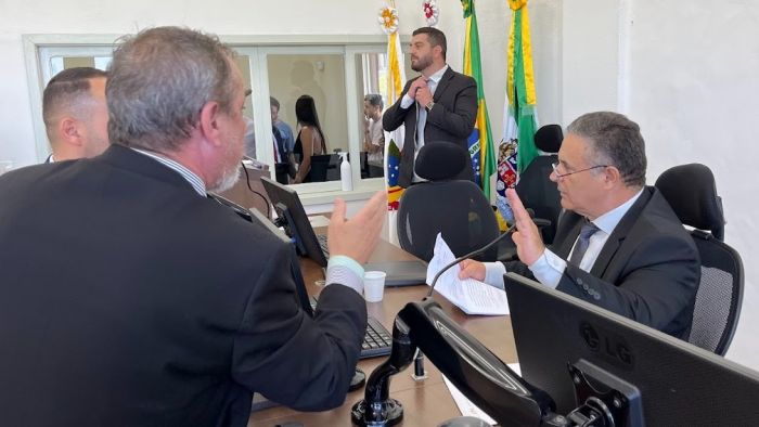A Câmara de Vereadores de Laguna começa o ano indefinida. Um bate-boca e uma discussão generalizada dominaram a sessão preparatória para a Mesa Diretora na manhã desta quarta-feira, 1º. O vereador mais idoso, Cleosmar Fernandes (MDB), abriu a reunião, mas não colocou a votação em pauta. O segundo mais velho, Luiz Otávio Pereira (PL), convocou uma segunda sessão que terminou com a eleição de Vítor Elíbio (MDB) como presidente e Tanara Cidade (PT) vice.