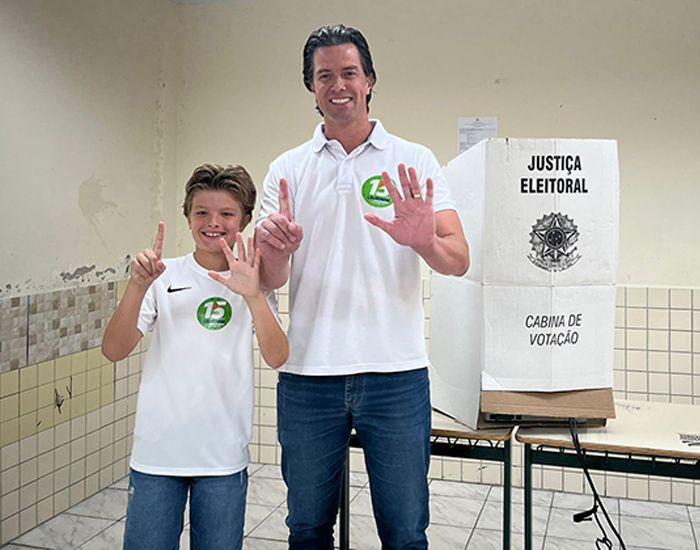 Os candidatos Laurinho Boeing e Duda Schueroff, da coligação Honestidade e Trabalho (MDB, PP e União Brasil), votaram na manhã deste domingo (6).