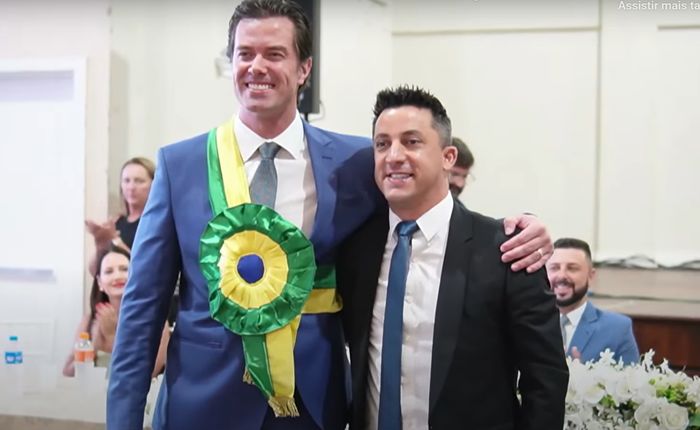 Na foto, o prefeito eleito ao lado do ex-prefeito Beto Kuerten Marcelino. Foto: TV Câmara