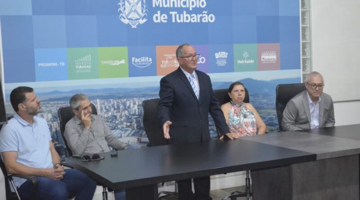 O vice-prefeito Moisés Nunes assumiu interinamente o cargo de prefeito de Tubarão nesta quinta-feira (12), em substituição a Jairo Cascaes, que se afastará até o dia 16 de dezembro para tratar da saúde. A cerimônia de transmissão ocorreu na Sala de Atos do Paço Municipal, com a presença de vereadores, servidores públicos e familiares do interino.