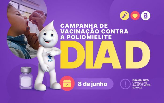 O dia D de vacinação contra a poliomielite acontece um dia antes do Dia Nacional da Imunização, 9 de junho, data que traz um alerta para a importância de manter as cadernetas de vacinação não só de bebês e crianças atualizadas, mas também de adolescentes, adultos, gestantes e idosos para reduzir o impacto das doenças imunopreveníveis na população, que podem ocasionar hospitalizações e mortes.