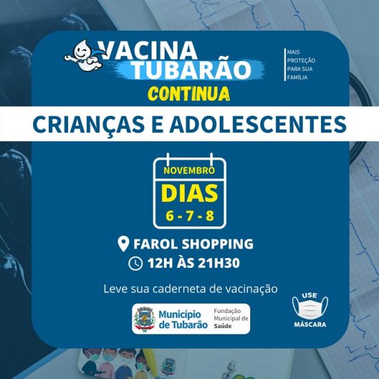 Isto porque terá continuidade nestas datas o movimento ‘Vacina Tubarão’, que tem por objetivo colocar o calendário de vacinação em dia de crianças e de adolescentes que por ventura estejam sem alguma dose daquelas consideradas obrigatórias e essenciais pelo Ministério da Saúde.