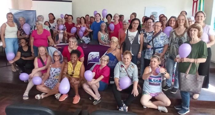 Um grande grupo de mulheres participou de uma roda de conversa sobre para conscientizar sobre a importância de buscar diagnóstico precoce, evitando o agravamento da doença.