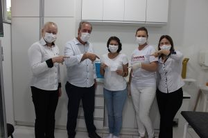 Marcou presença no início dos trabalhos de vacinação contra Covid-19 o prefeito de São Ludgero, Ibaneis Lembeck, o Iba, a Secretária da Saúde, Nilva Schlickmann Pickler, e a Coordenadora da Atenção Primária à Saúde, Responsável pela Vigilância Epidemiológica, Enfermeira Maria Madalena Beltrame.