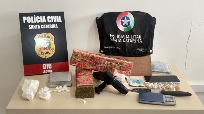 Em uma ação realizada na tarde desta sexta-feira (15), no bairro Magalhães, em Laguna, a Polícia Civil, por meio da Divisão de Investigação Criminal (DIC), e a Polícia Militar, com apoio do Pelotão de Patrulhamento Tático (PPT), Canil e Agência de Inteligência (P2), apreenderam drogas e munições durante o cumprimento de um mandado de busca e apreensão.