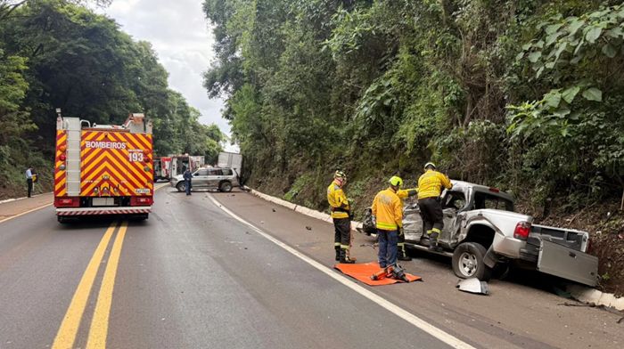 Entre os veículos envolvidos estavam dois caminhões, quatro automóveis, uma carreta e uma motocicleta. Conforme informações das equipes do Serviço Aeropolicial de Fronteira (Saer-Fron), um caminhão saiu da pista e colidiu com a motocicleta e três carros que trafegavam no sentido contrário.