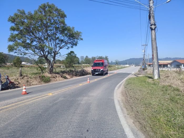 Na manhã desta quarta-feira (11), por volta das 9h, o SAMU foi acionado para atender um acidente de trânsito na Rua José Antônio da Silva, no bairro Água Boa, em Sangão. Uma motoneta Biz 125, com placa de Criciúma, colidiu contra um barranco, envolvendo duas pessoas.