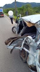 No local, o motorista do Corsa havia sido ejetado do veículo e encontrado caído na via pública, consciente, porém confuso. Ele apresentava fratura fechada de fêmur, fratura aberta de punho, escoriações e hematoma na área abdominal, além de suspeita de traumatismo craniano. Após receber os primeiros socorros, a vítima foi conduzida ao pronto atendimento de Garopaba e posteriormente transferida pela aeronave Arcanjo para um hospital.