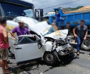 De acordo com as informações preliminares repassadas no local, a colisão aconteceu em via pública e deixou ao menos uma vítima presa às ferragens. As circunstâncias do acidente ainda estão sendo apuradas.