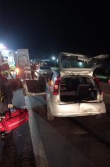 Já a condutora de um Fiesta precisou ser extraída do veículo, pois ficou presa às ferragens, e em situação estável.