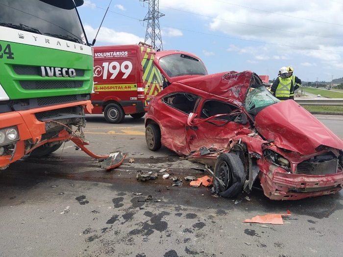 Um grave acidente foi registrado ontem(18), por volta do 12h20 na BR-101, no trevo que dá acesso ao município de Sangão.