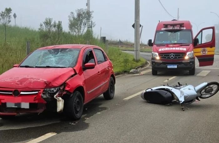 Um acidente registrado na manhã de hoje (17) deixou um motociclista de 47 anos ferido após colidir com um Volkswagen Gol no bairro Murialdo, em Orleans, por volta das 7 horas. Segundo o Corpo de Bombeiros, o homem foi arremessado da motocicleta e sofreu diversas fraturas, além de apresentar dificuldade respiratória após a colisão.