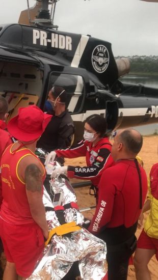 O menor foi levado, consciente e orientado, pela aeronave da Sarasul para Tubarão e conduzido pela ambulância dos bombeiros militares da cidade ao Hospital Nossa Senhora da Conceição (HNSC)., em Tubarão.