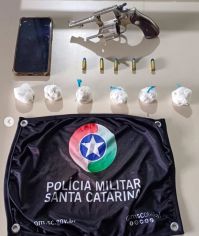 A Polícia Militar prendeu, nesta sexta-feira (31), um homem de 23 anos por tráfico de drogas e posse ilegal de arma de fogo no bairro Congonhas, em Tubarão.