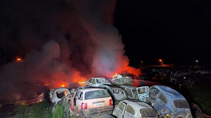 O Corpo de Bombeiros Militar realizou uma força-tarefa na noite dessa quarta-feira (12) para combater um incêndio em 80 veículos no bairro Operária, em Araranguá. A ocorrência foi registrada por volta das 21h45 na rua Tinho Réus.