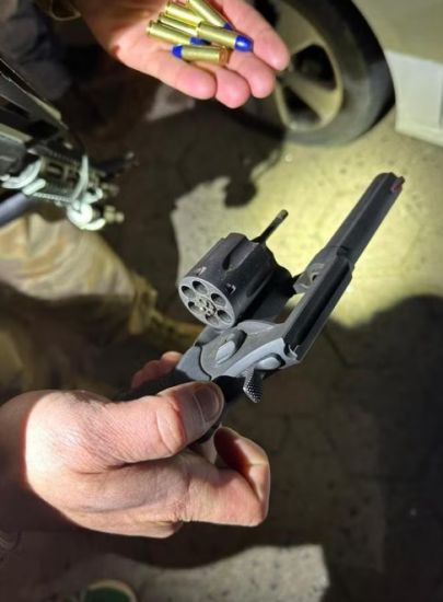 Nas pernas dele, os socorristas encontraram um revólver que estava com registro de roubo em Joaçaba, no Oeste de Santa Catarina. A arma tinha seis balas intactas e mais 10 embaladas.