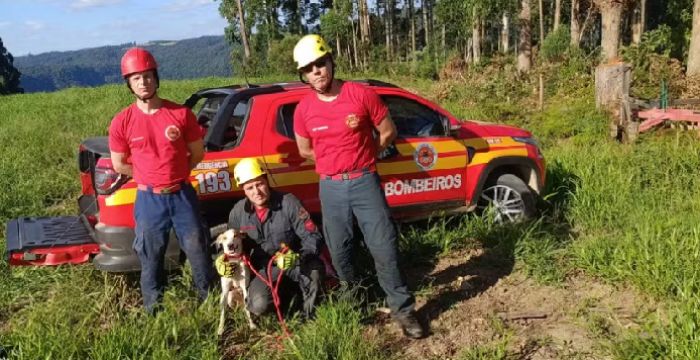 Um cachorro foi resgatado de rapel em um cânion em Santa Terezinha, no Vale do Itajaí, Santa Catarina. Os bombeiros montaram uma operação com rapel e precisaram percorrer mais de 40 quilômetros de estrada de chão, de carro, e outros dois em trilha para chegar até o animal.
