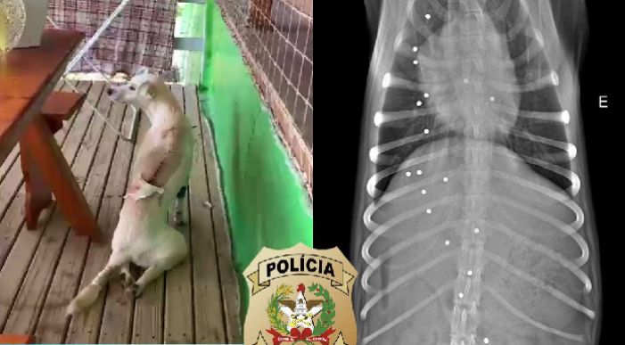Identificaram-se ao menos 18 projeteis no corpo do cachorro, que passou por radiografia, cirurgia e permanece sob os cuidados do tutor.
