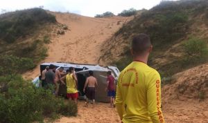 Por volta das 17h50 deste domingo, quatro jovens sofreram um acidente ao capotar o carro numa duna de aproximadamente 7m na Lagoa do Arroio Corrente, popularmente conhecida como "Lagoa da Jagua".