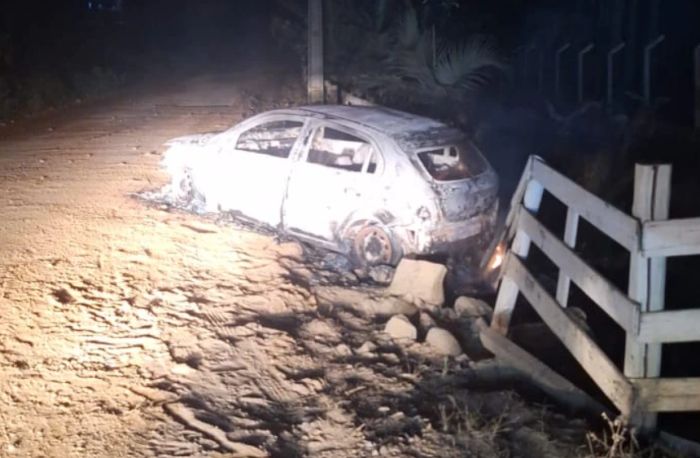 Um carro ficou totalmente destruído após pegar fogo na madrugada desta quinta-feira (24), na localidade de Barra do Rio Chapéu, em Braço do Norte. O Corpo de Bombeiros foi acionado por volta das 4h20 e, ao chegar no local, constatou que ainda havia focos de incêndio no veículo.