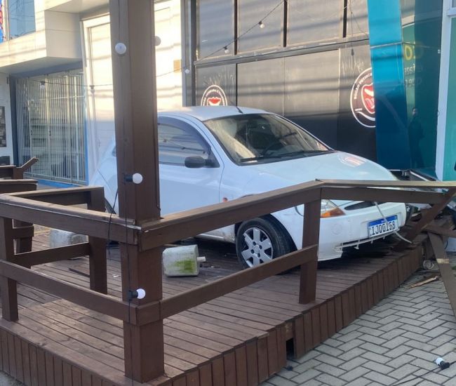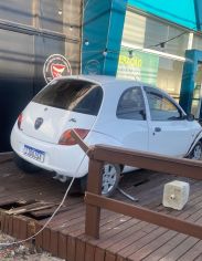 Um acidente foi registrado pelas câmeras de segurança de uma petiscaria que fica na Avenida Patricío Lima em Tubarão. Nas imagens é possível ver o momento em que um Ford Ká perde o controle e acaba subindo a calçada. Com o impacto o veículo acabou subindo e destruíndo parcialmente o deck de madeira do local.