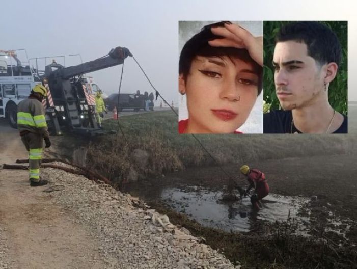 O acidente ocorrido na manhã deste domingo (20) na BR-101, em Sangão, resultou na morte de dois jovens identificados como Maria Vitória Machado José, de 19 anos, e José Gabriel Fernandes da Cruz, de 21 anos. O veículo em que estavam, um VW Gol com placas de Criciúma, saiu da pista, capotou e caiu em um rio, ficando totalmente submerso.