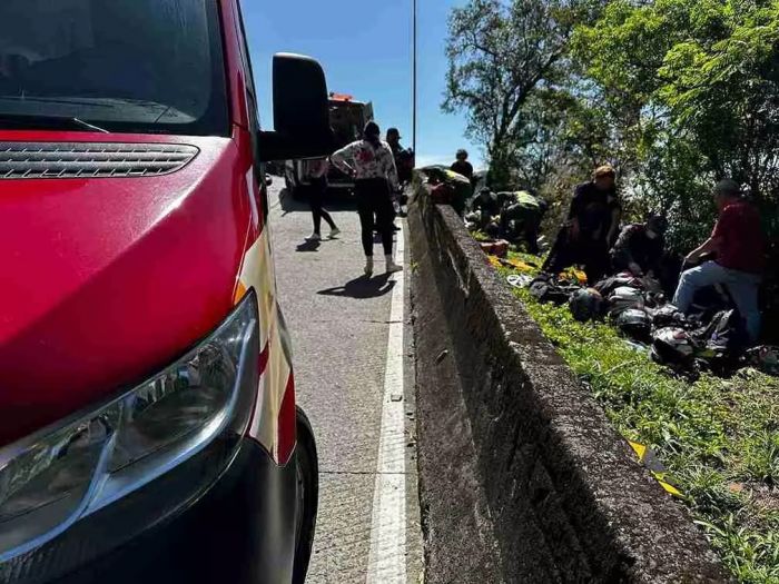 Motociclistas foram resgatados após incidente na descida da serra, sendo encaminhados ao hospital
