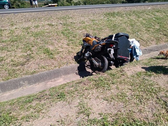 Na moto havia um casal. O condutor perdeu o controle da motocicleta e acabou parando no canteiro central da rodovia. O homem foi conduzido ao hospital e a caroneira recusou atendimento