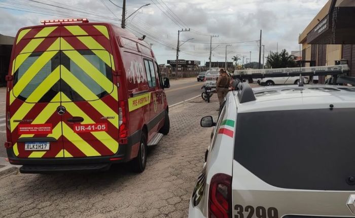 Um acidente de trânsito envolvendo um carro e uma motocicleta foi registrado na tarde deste domingo (28), por volta das 16h, na rodovia Armando Machado, região central de Jaguaruna. O motorista do automóvel envolvido na colisão deixou o local antes da chegada do socorro.