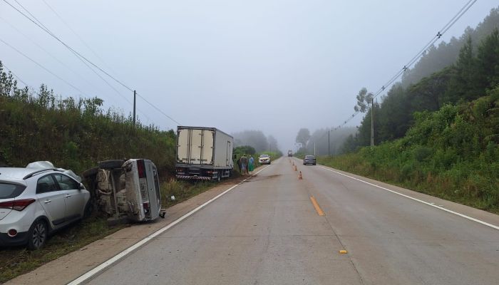 Um acidente de trânsito envolvendo três veículos foi registrado na madrugada desta sexta-feira (30), por volta das 5h55, na rodovia SC-114, no município de Palmeira, na Serra Catarinense. A ocorrência deixou uma pessoa ferida e mobilizou equipes da Polícia Militar Rodoviária (PMRv) e do Serviço de Atendimento Móvel de Urgência (SAMU).