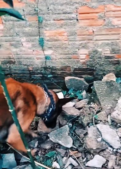 Com o apoio do cão policial Gam, os policiais localizaram 42 buchas de cocaína, totalizando 18,1 gramas, que haviam sido dispensadas durante a fuga e escondidas no local.
