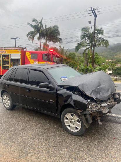 O Corpo de Bombeiros Militar de Braço do Norte atendeu, no início da tarde deste sábado (22), um acidente de trânsito na Rodovia SC-370, no bairro Travessão. A ocorrência foi registrada às 12h39 e envolveu um Toyota Yaris prata e um Volkswagen Gol preto.