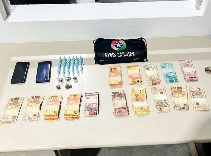 Com eles, os policiais encontraram 35 pinos de cocaína, cinco porções de maconha e R$ 444 em dinheiro. Os dois receberam voz de prisão e foram conduzidos à Delegacia de Polícia Civil, juntamente com o material apreendido.