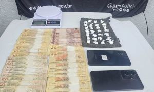 No local, um homem e uma mulher foram abordados. Durante a ação, a mulher tentou entrar rapidamente na residência, mas foi contida pelos policiais. Em buscas no interior do imóvel, foram localizadas 26 porções de cocaína já fracionadas, totalizando aproximadamente 16 gramas, além de uma balança de precisão, R$ 1.248 em dinheiro e dois aparelhos celulares.