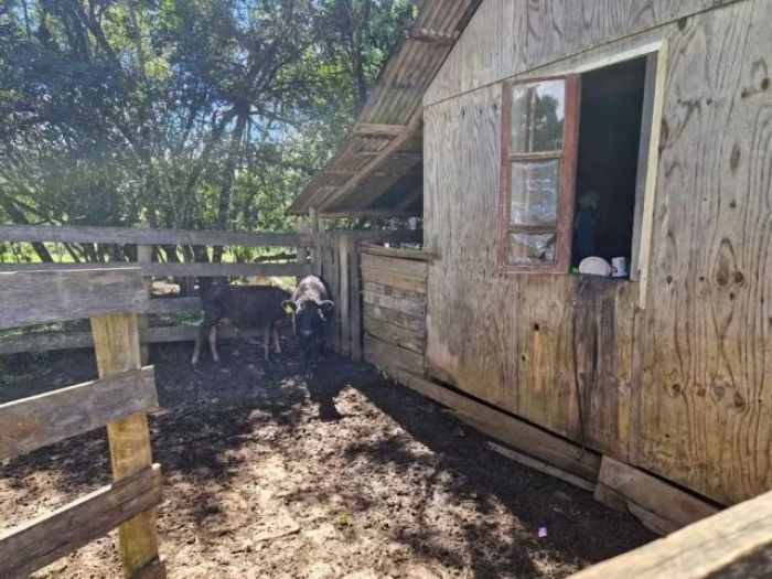 Sobre o barraco onde viviam, os fiscais encontraram um banheiro improvisado, sem condições de habitação. O espaço era o mesmo das estrebarias de bezerros e ovelhas da propriedade. Os dois irmãos e os animais eram divididos apenas por ripas de madeira. Ao lado, também havia um estábulo de porcos.