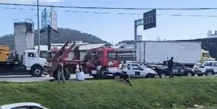 Um engavetamento envolvendo cinco automóveis e um caminhão foi registrado na manhã desta segunda-feira (28), no km 132,5 da BR-101, em Balneário Camboriú, sentido Porto Alegre.