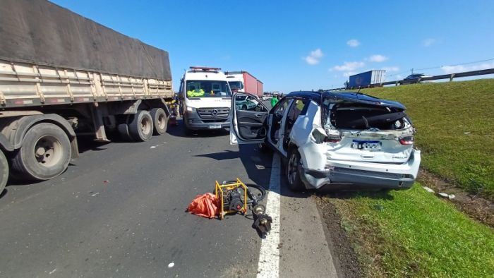 Acidente no km 406 resultou em quatro feridos e trânsito interrompido na tarde desta quinta-feira (5)