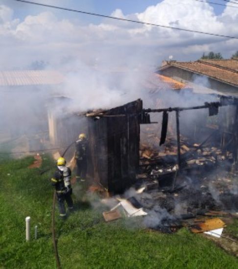 As chamas consumiram completamente a residência, que já estava desocupada. Para conter o incêndio e realizar o rescaldo, os bombeiros utilizaram cerca de dois mil litros de água.